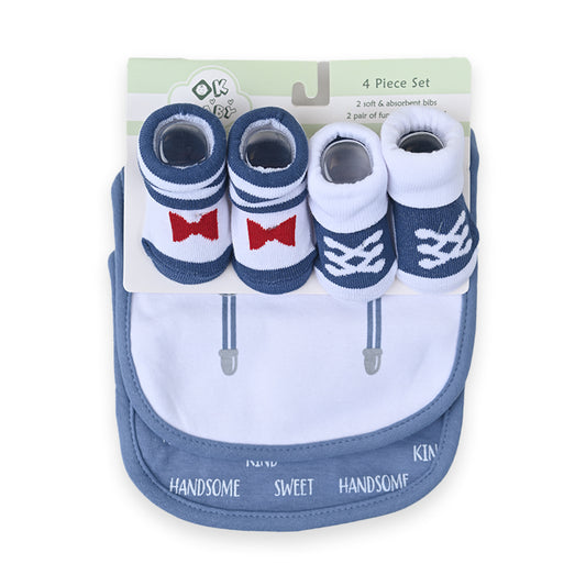 4Pice Set Blue & White Baby Bibs and Booties