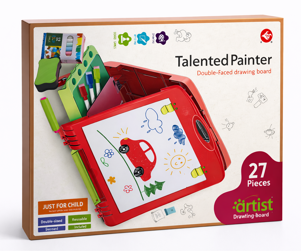 Artist Talented Painter Double-Faced Drawing Board Set – 27 Pieces (Kids Educational Art Kit)
