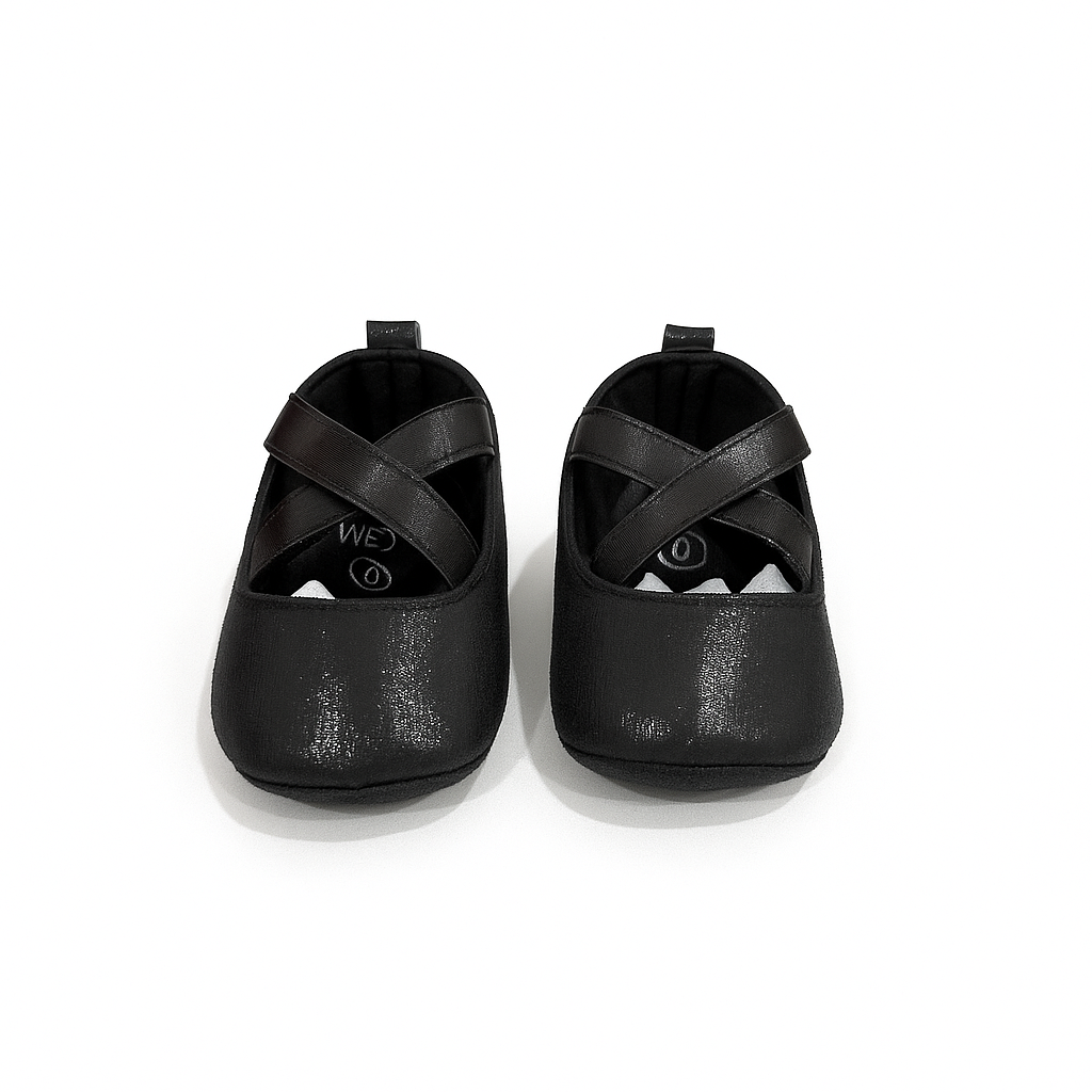 Baby Black Criss-Cross Soft Shoes – Elegant Party & Casual Wear for Infants 🖤👶