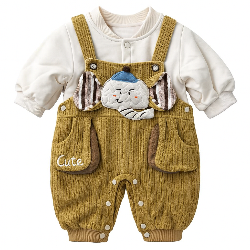 Baby Winter Corduroy Dungaree Set – Cute Tiger Patch & Soft Inner Shirt