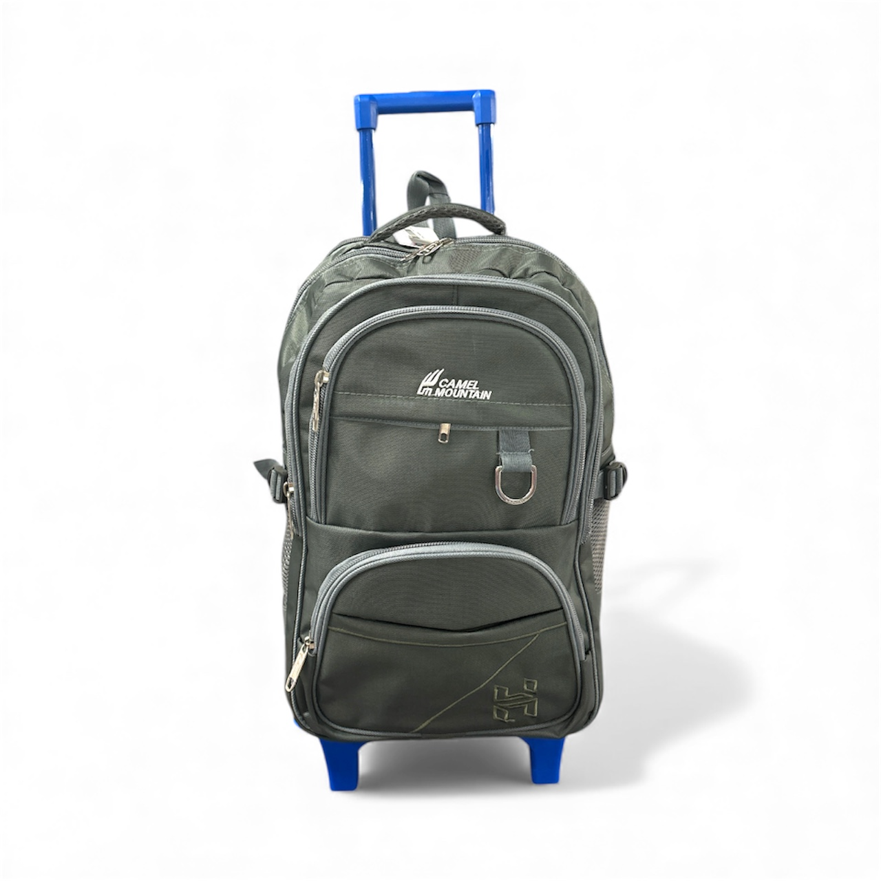 Camel Mountain Grey Trolley Backpack – Multi-Pocket Travel & School Bag