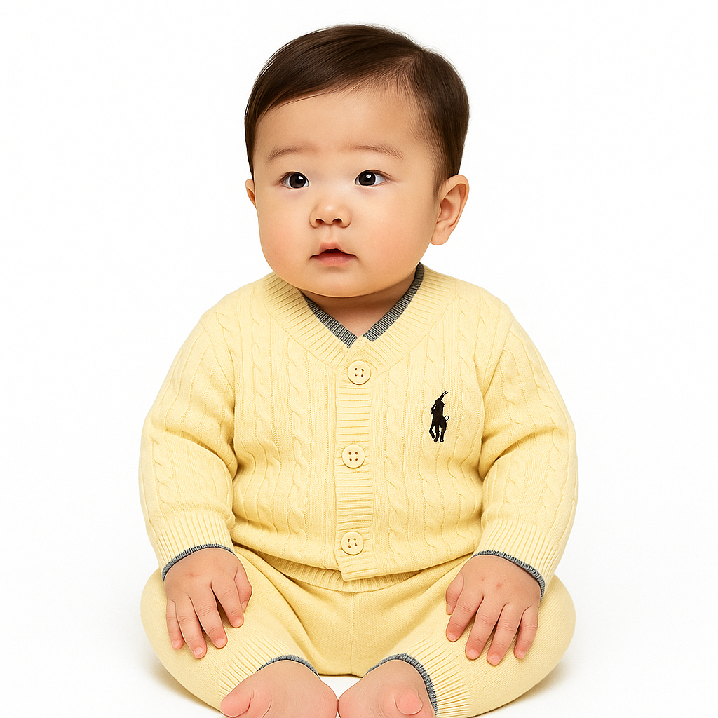Cream & Grey Knitted Baby Set – Elegant Button-Up 2-Piece Outfit