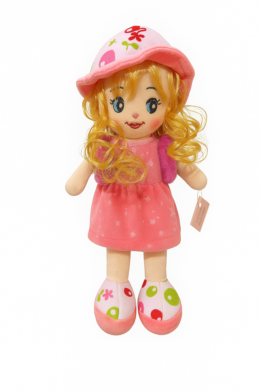 Cute Plush Doll with Pink Dress & Hat – Soft Toy for Kids