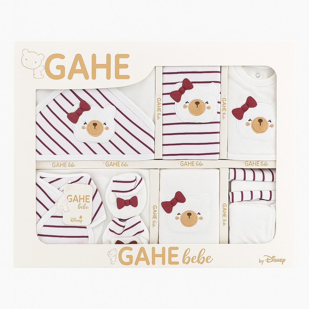 Disney GAHE Bebe 10 Pcs Baby Gift Set (0–6 Months) – Soft Cotton Essentials Box | Cute Bear & Bow Design