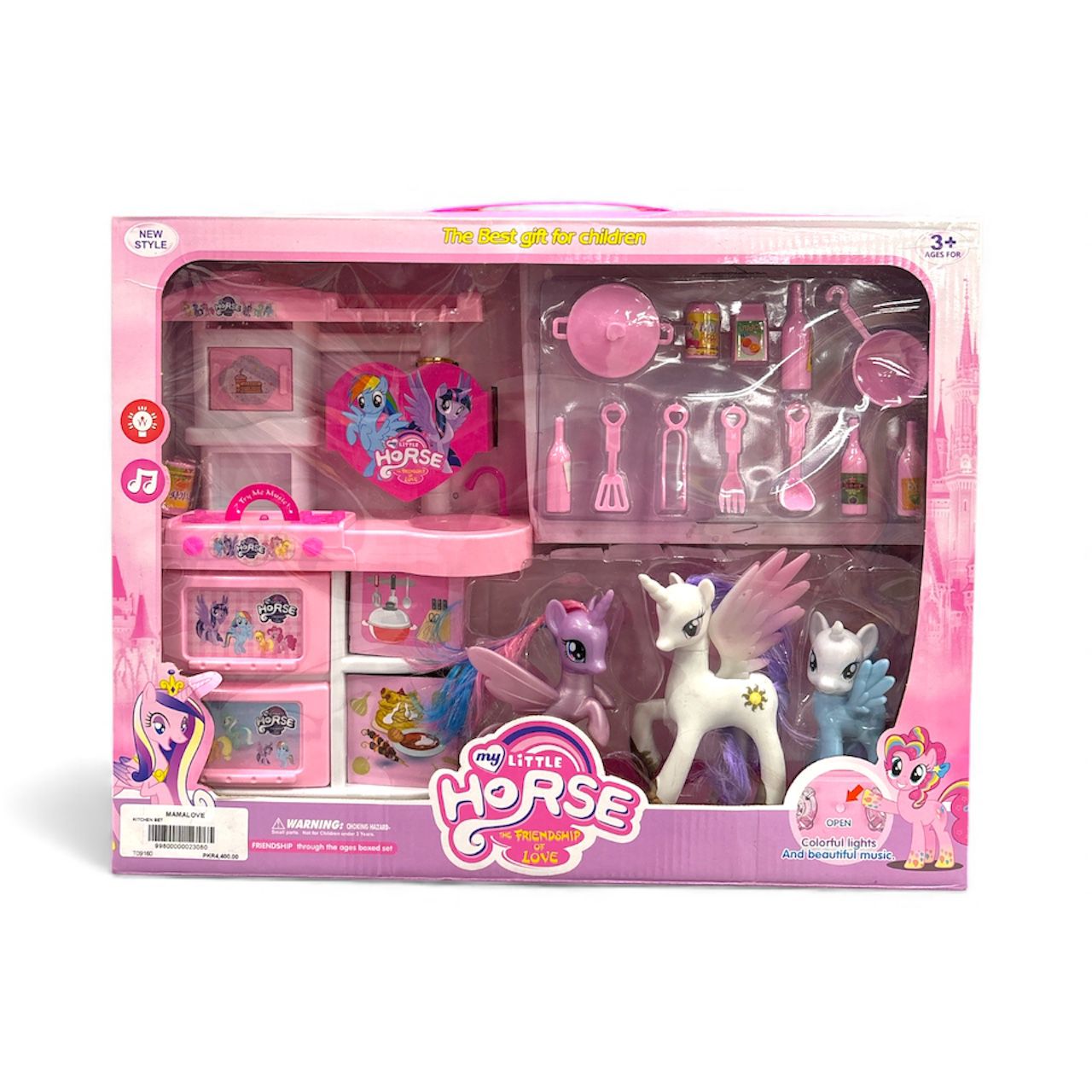 This adorable set includes magical ponies and a full kitchen setup, allowing kids to create fun stories filled with friendship, creativity, and adventure. With musical features and colorful accessories, itβs the perfect combination of playtime magic and learning fun!