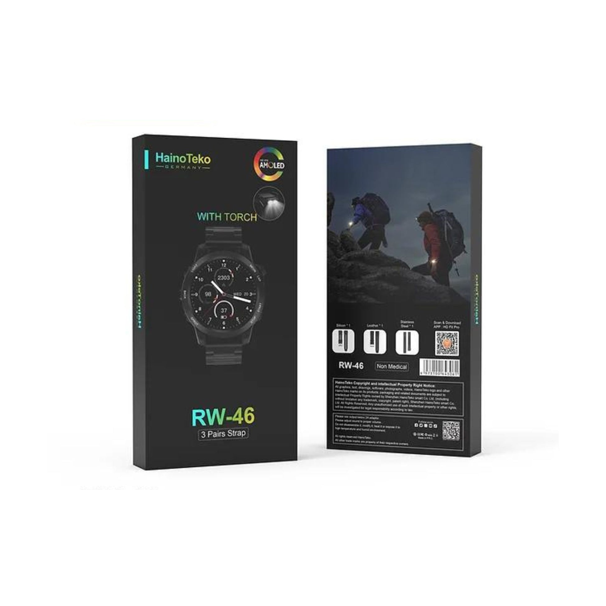 Haino Teko RW-46 Smartwatch – AMOLED Display | With Torch | 3 Straps Included