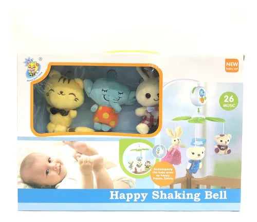 Make bedtime and playtime soothing and joyful for your little one with the Happy Shaking Bell Musical Baby Crib Mobile. Featuring adorable plush characters including a bunny, bear, kitten, and elephant, this mobile helps comfort babies while supporting their early sensory development.