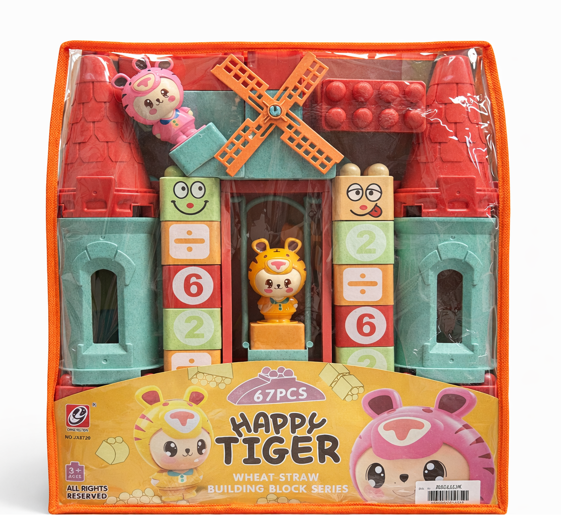 Happy Tiger Wheat Straw Building Blocks Set – 67 Pcs Educational Puzzle Toy with Carry Bag (Ages 3+)