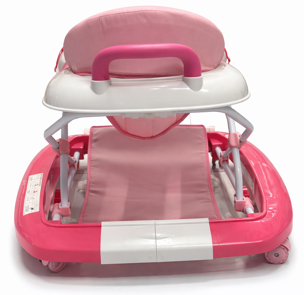 Help your little one take their first steps in fun and comfort with this Junior Baby Walker. Designed in a cute pink and white color combination, this walker features a soft cushioned seat for extra comfort and a colorful musical toy tray to keep your baby entertained. The sturdy frame and wide base provide better stability, while the smooth-rolling wheels allow easy movement across floors. It also includes a lower fabric support for added safety and convenience. Perfect for encouraging early walking skills and sensory development, this baby walker is a great addition to any home with a growing toddler.