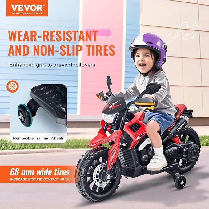 VEVOR Kids Ride On Motorcycle, 6V Battery Powered Electric Motorcycle with Speed Up to 3mph
