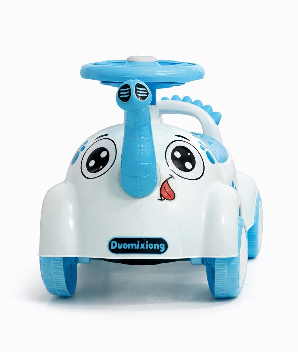 Kids Elephant Ride-On Push Car – Cute Baby Scooter with Steering Wheel & Backrest (Blue/White)
