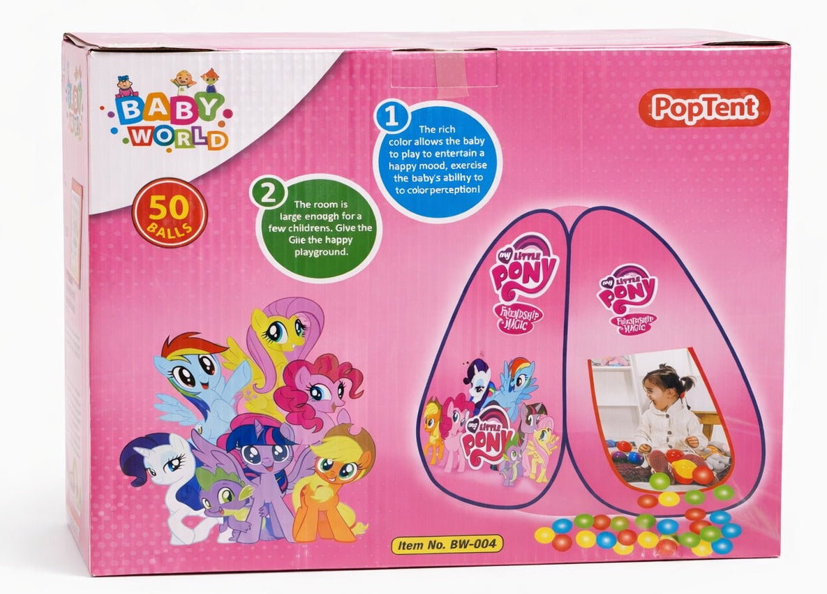Create a fun and colorful play space for your little one with this Kids Pop-Up Play Tent with Ball Pit. Designed in a cheerful My Little Pony theme, this tent provides a safe and exciting environment for crawling, playing, and imaginative fun.