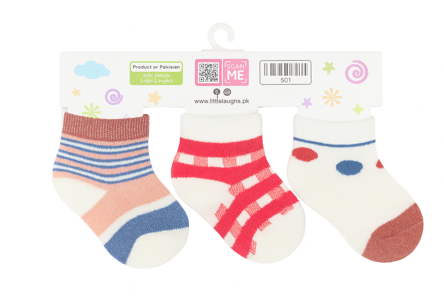Little Laughs Baby Socks Set (3 Pairs) – Soft Cotton Infant Socks with Fun Patterns