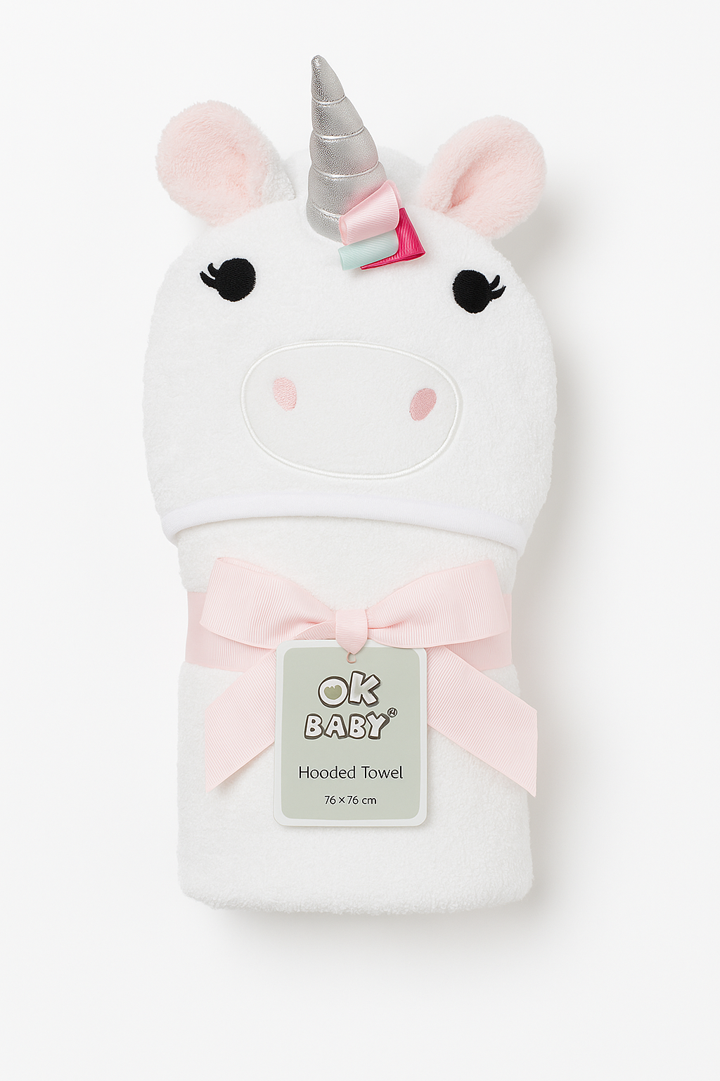 Turn bath time into a magical adventure with the OK Baby Hooded Towel, featuring an adorable unicorn design every little one will love! Crafted from ultra-soft, absorbent fabric, this towel gently pampers your baby’s delicate skin while keeping them warm and cozy after every bath.