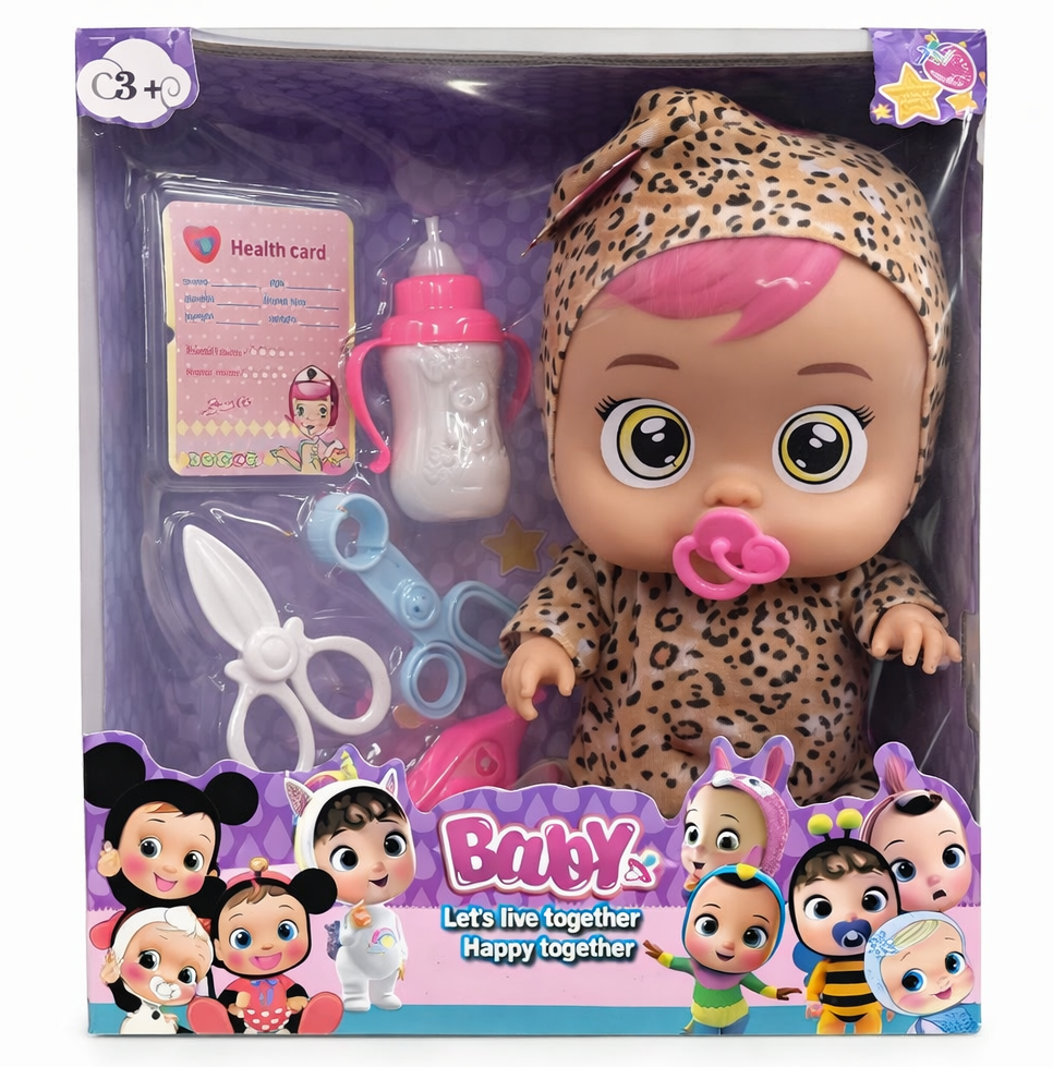 Baby Doll Doctor Play Set with Bottle & Medical Accessories (3+ Years) – Leopard Outfit