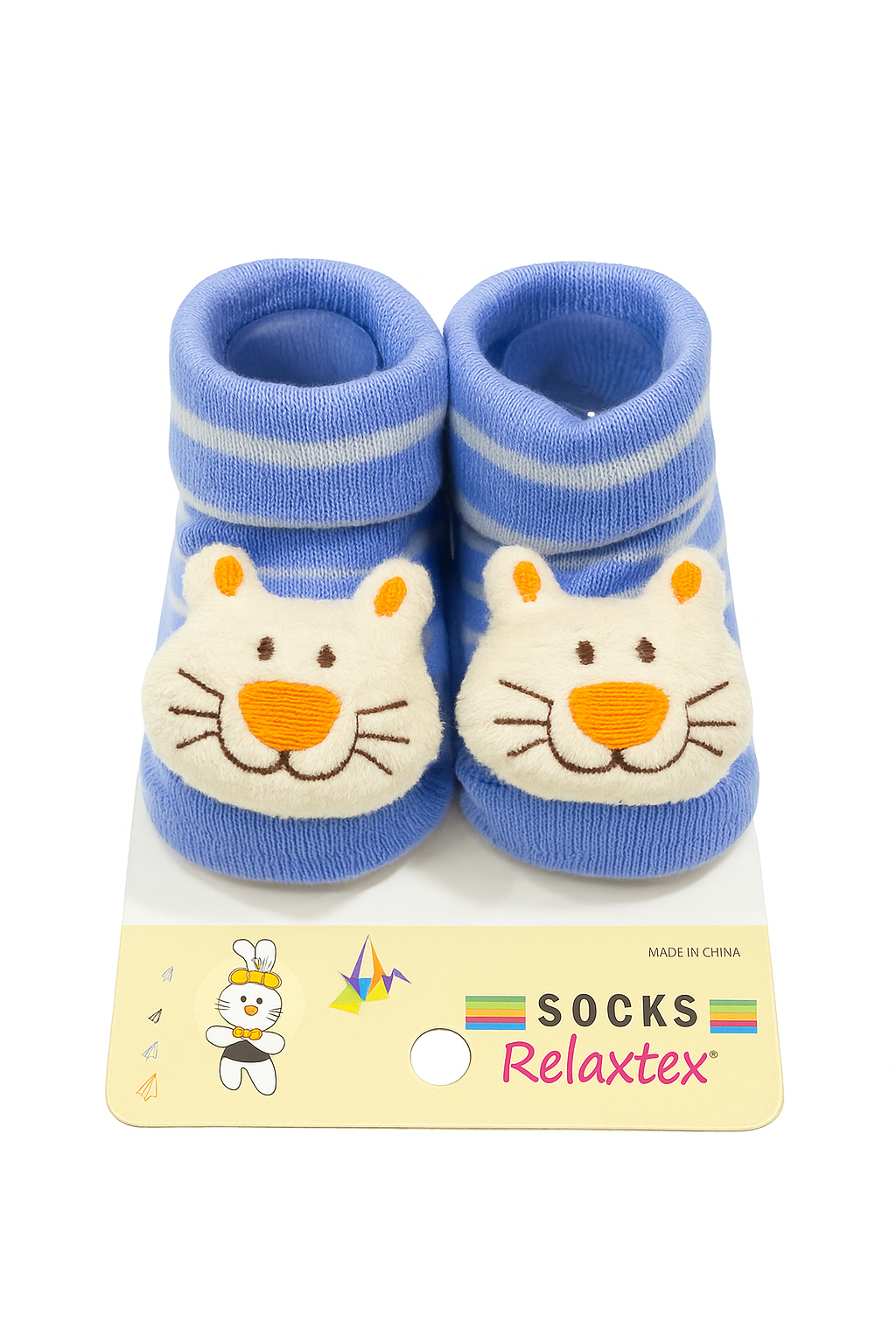 Relaxtex Baby Socks – Soft Blue Tiger Design for Newborns