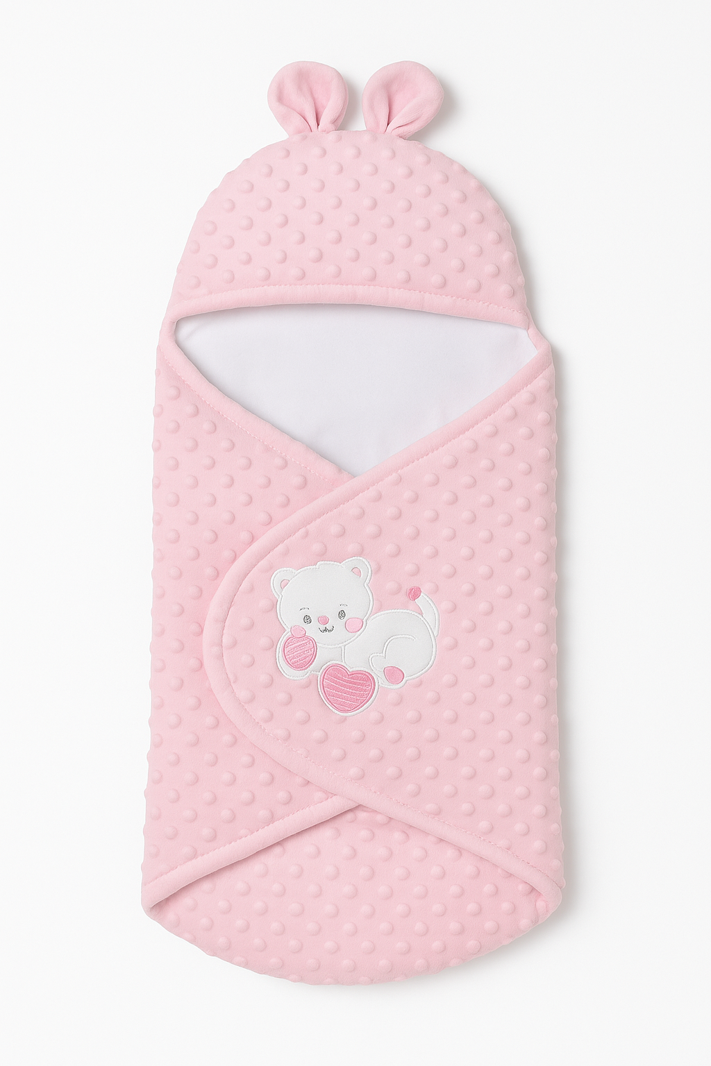 Description:Keep your little angel warm and comfortable with this adorable baby pink hooded swaddle wrap. Designed with cute ear detail... Read more