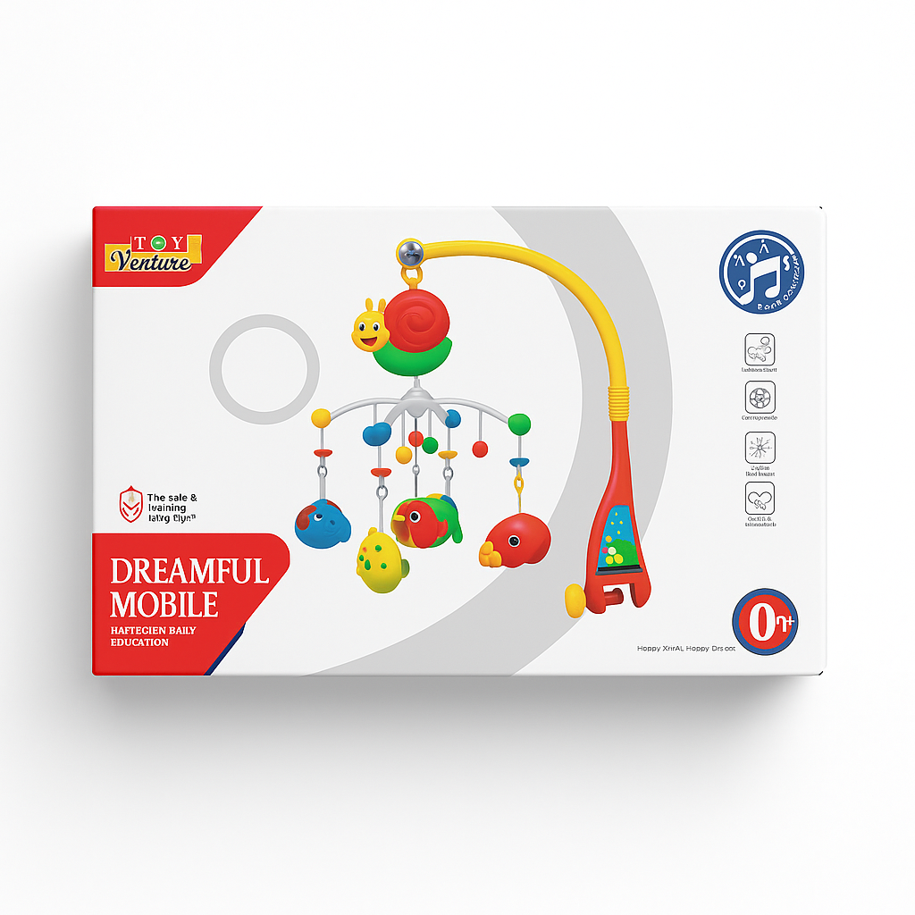 Soothe, entertain, and stimulate your newborn with the Toy Venture Dreamful Baby Mobile. Designed for early development, this crib mobile features bright, colorful hanging toys, gentle rotating motion, and melodious music to help calm your baby and encourage early sensory learning.